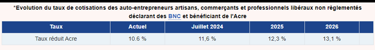 Votre taux réduit de cotisations ACRE va augmenter si vous êtes un auto-entrepreneur artisan, commerçant ou professionnel libéral non règlementé déclarant des BNC affilié à la SSI :