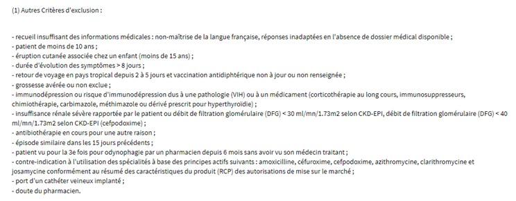- Pour l’angine, les enfants âgés de moins de 10 ans sont exclus, ainsi que les femmes enceintes, les personnes ayant des antécédents médicaux, etc. ;