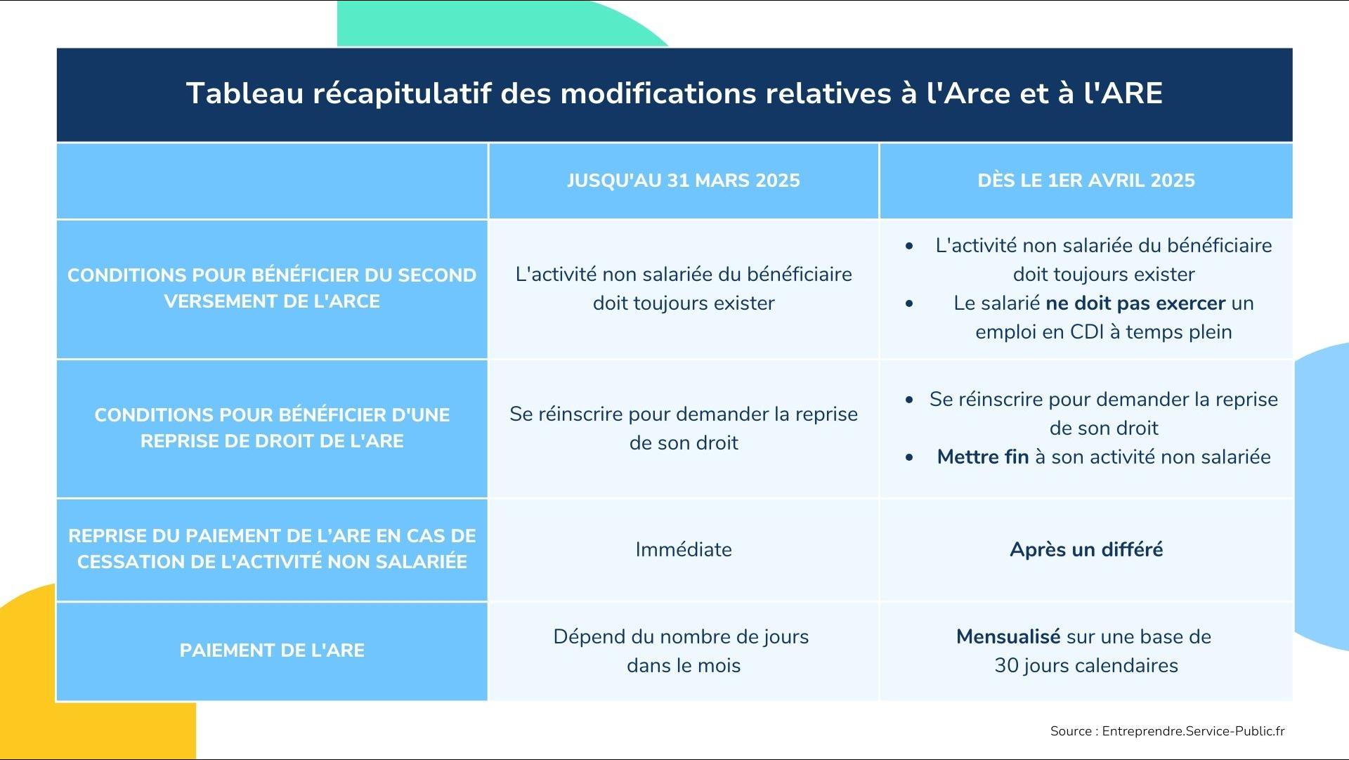 Rappelons pour finir que l’ARCE et l’ARE ne sont pas cumulables : vous devez ainsi choisir entre percevoir l’ARE mensuellement ou opter pour le versement en capital de l’Arce (en deux fois) si vous lancez votre activité entrepreneuriale.