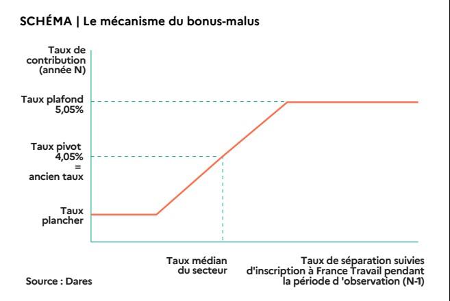 Les entreprises concernées (hors entreprises relevant des secteurs protégés qui en sont exemptées la première année) voient leur cotisation chômage varier entre 3 et 5,05 % de leur masse salariale selon leur niveau de recours aux contrats courts, contre un taux fixé en principe à 4,05 %.