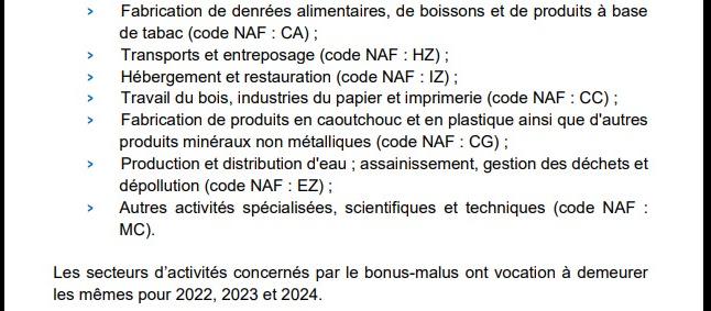 Les 7 secteurs concernés par le bonus-malus sont les suivants :