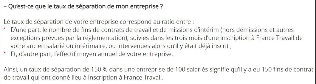 Selon l’étude de la Dares, 36 % des entreprises concernées par le dispositif sont en situation de malus, et les 3/4 d’entre elles sont au taux plafond de 5,05 %. Ces entreprises contribuent respectivement à 91 % et 84 % des séparations. Quant aux entreprises qui bénéficient d’un bonus, elles représentent 64 % de celles concernées par le dispositif, dont près de 60 % sont au taux plancher de 3 %. Ces entreprises sont à l’origine de 9 % des séparations de leurs secteurs.