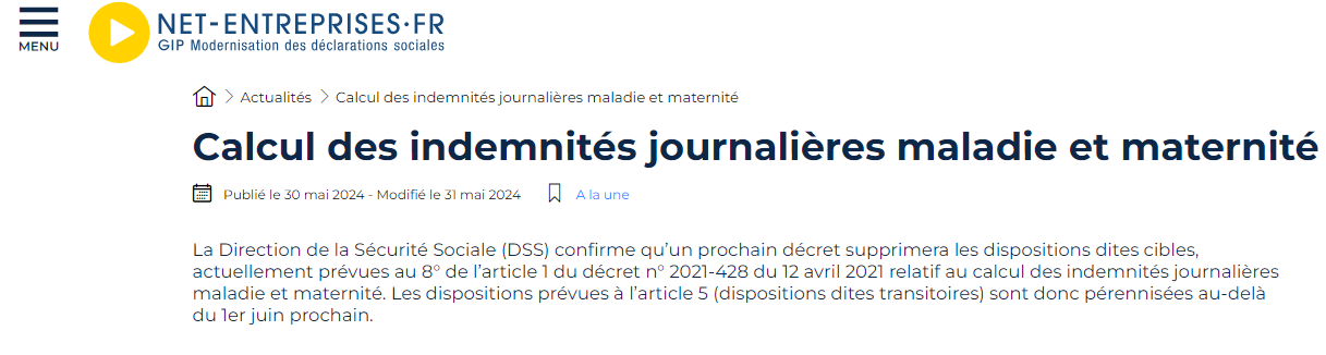 Souvenez-vous : après un report de plusieurs mois, la réforme du calcul des indemnités journalières (IJSS) maladie/maternité en cas de période de référence incomplète, qui devait entrer en vigueur au 1er juin 2024, avait été abandonnée au dernier moment.
