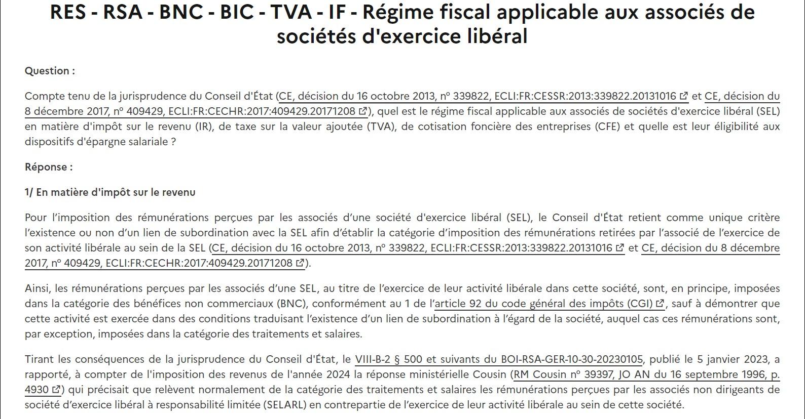 Associés de SEL : une nouvelle doctrine fiscale applicable depuis le 1er janvier 2024…