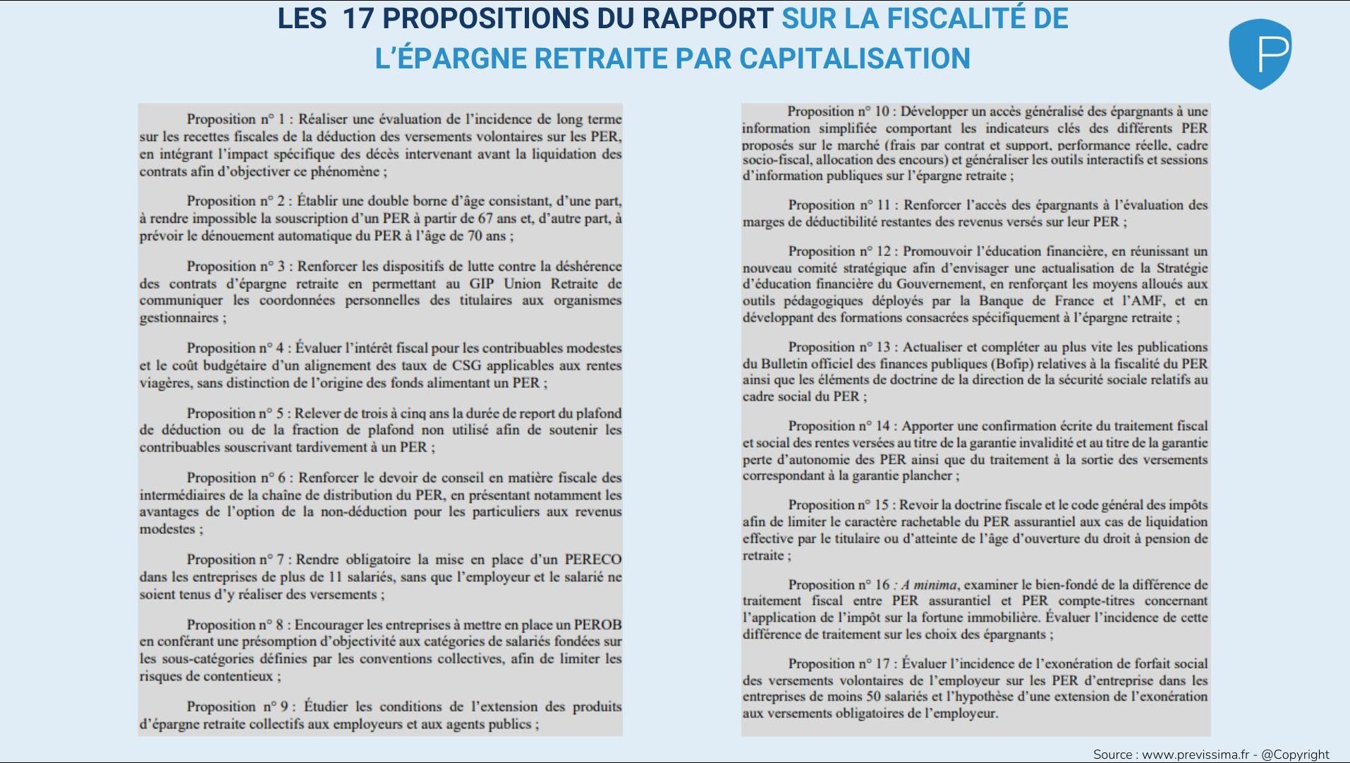 Après avoir entendu plus de 70 personnes dans le cadre d’une vingtaine d’auditions, les rapporteurs ont donné naissance à un rapport d’information de 178 pages, contenant 17 propositions et recommandations visant à développer l’épargne retraite en France.