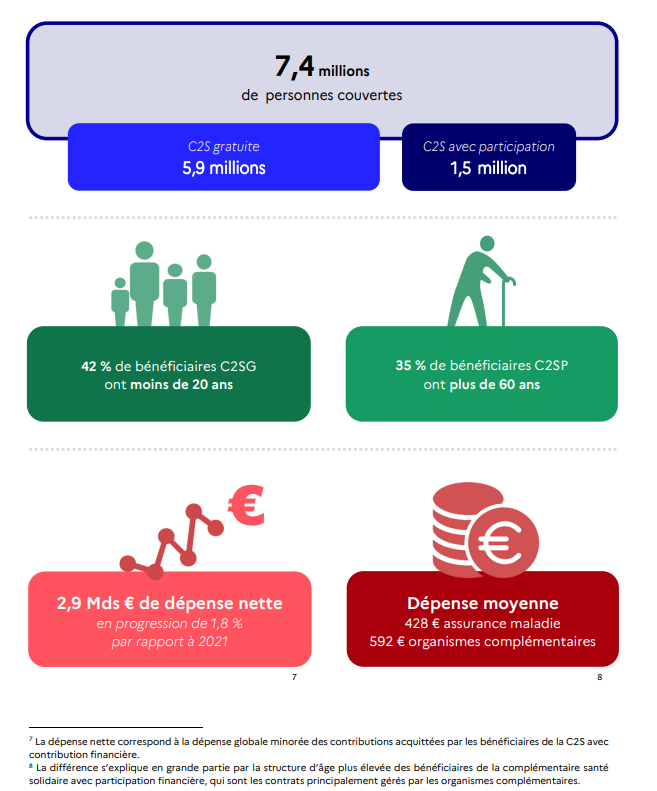 Un récent rapport publié par la Sécurité sociale nous livre plusieurs données très intéressantes. Parmi elles, le fait que 7,4 millions de Français sont bénéficiaires de la C2S. Et surtout : un peu plus d’une personne éligible à la Complémentaire santé solidaire sur deux aurait effectivement eu recours à cette prestation (55 % en 2020, contre 56 % en 2021) !