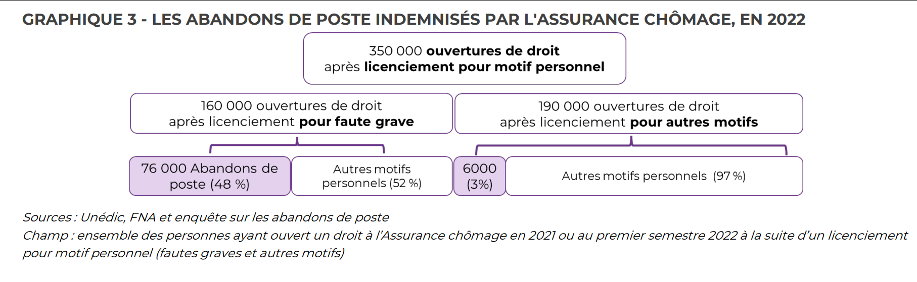 - 76 000 abandons de poste sur les 160 000 ouvertures de droits après un licenciement pour faute grave ;
