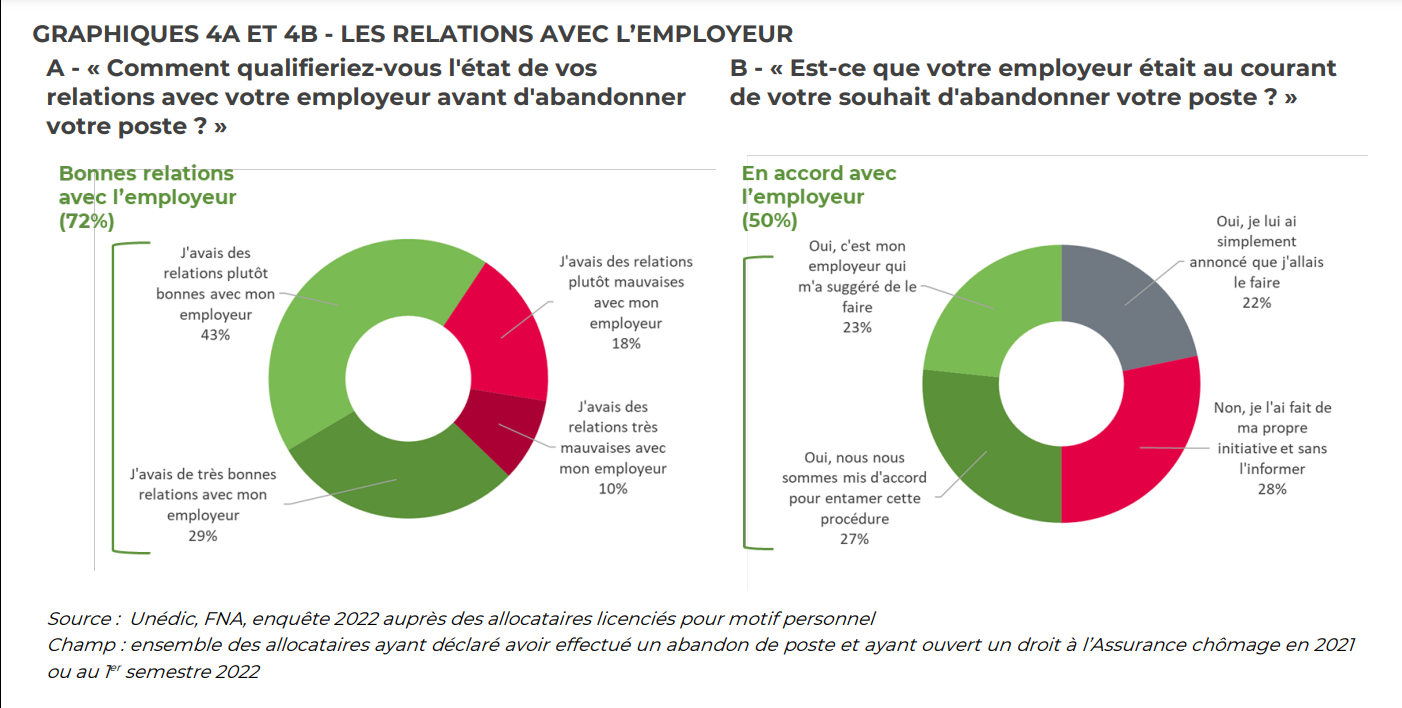- 72 % témoignent entretenir de bonnes relations avec leur employeur avant d'abandonner leur poste.