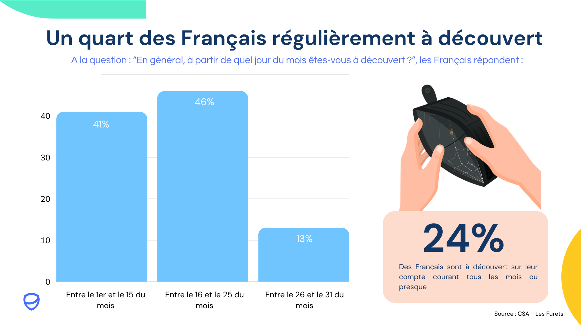 Selon une récente étude du CSA Research pour le comparateur LesFurets, 24 % des Français déclarent être à découvert chaque mois. La date moyenne du passage en négatif sur le compte courant s’établit désormais autour du 18 du mois. Certaines catégories sociales et situations de vie apparaissent également nettement plus exposées que d’autres.