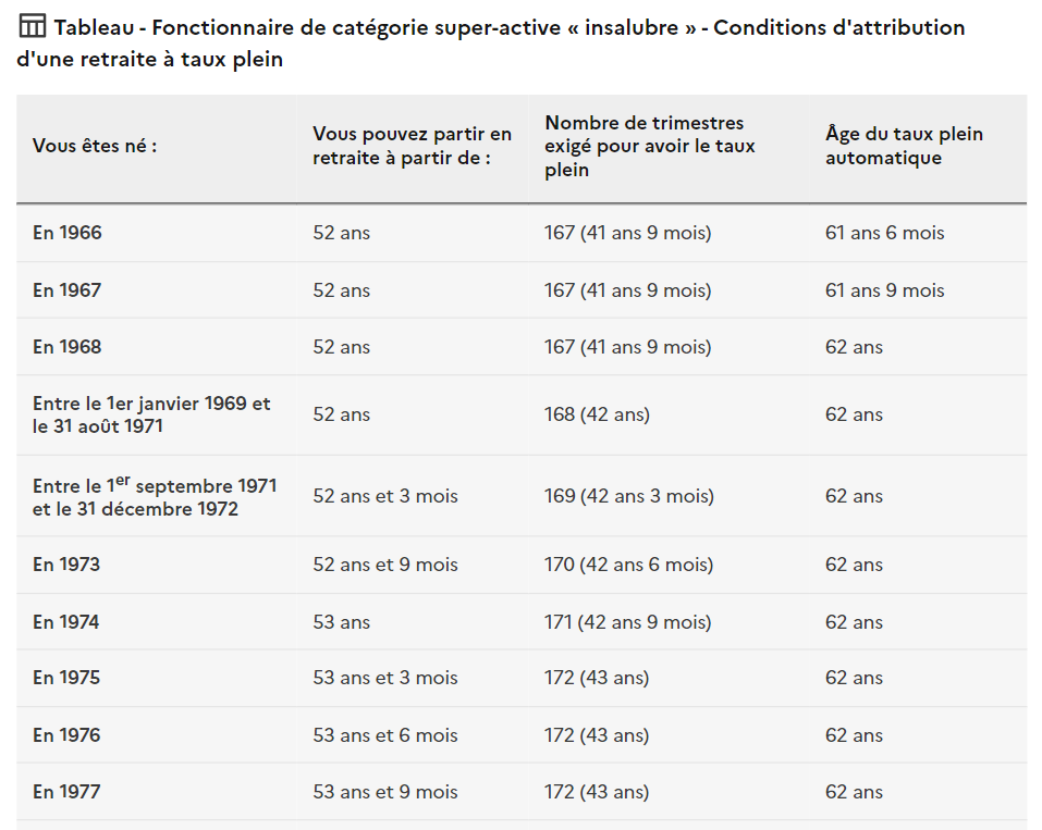 Pour rappel, la catégorie super-active comprend les fonctionnaires de réseaux souterrains des égouts, le personnel de surveillance de l’administration pénitentiaire, les fonctionnaires des services actifs de la police nationale etc.