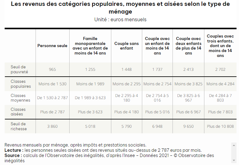 - De la classe aisée si vos revenus sont supérieurs à 7 000 €