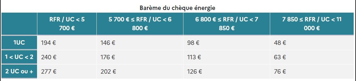 Découvrez ci-dessous le barème du chèque énergie :