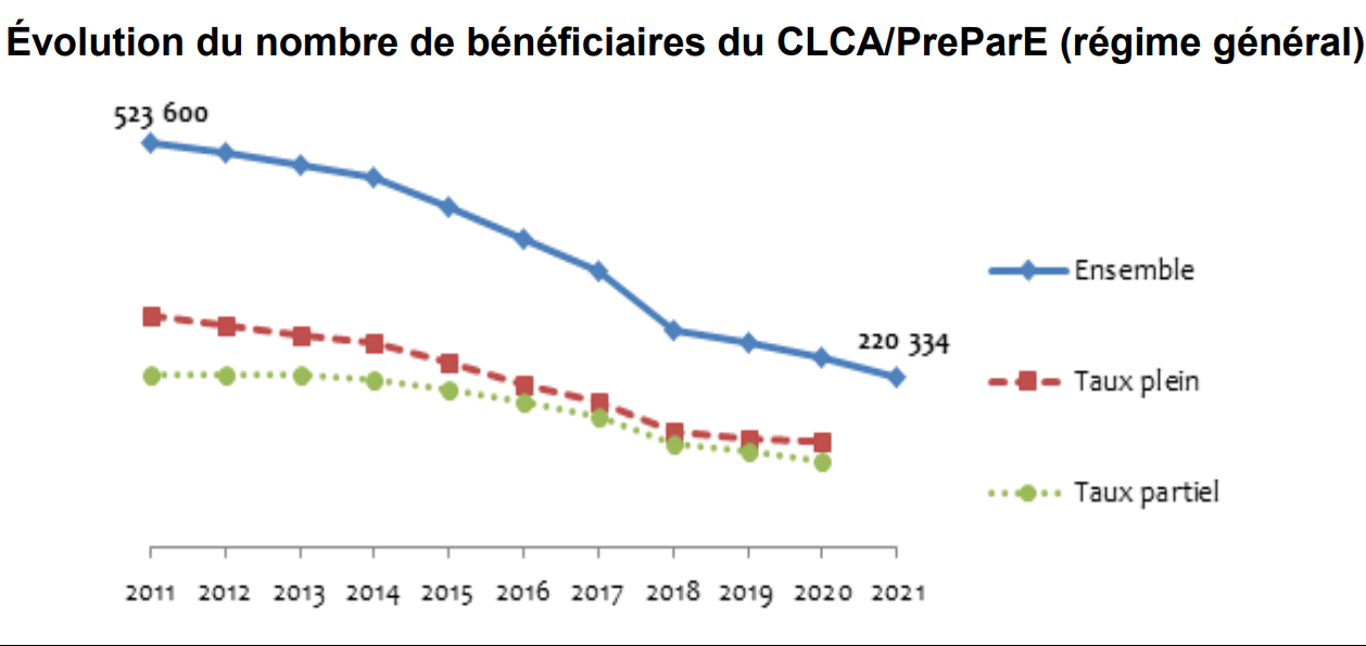 Pour rappel, la prestation partagée d'éducation de l’enfant (PreParE) a été créée en 2014, à la suite de la transformation du complément de libre choix d’activité (CLCA). Ce dispositif permet aux parents qui souhaitent cesser ou réduire leur activité professionnelle pour s’occuper de leur(s) enfant(s) de percevoir une aide financière sous condition d’activité antérieure.