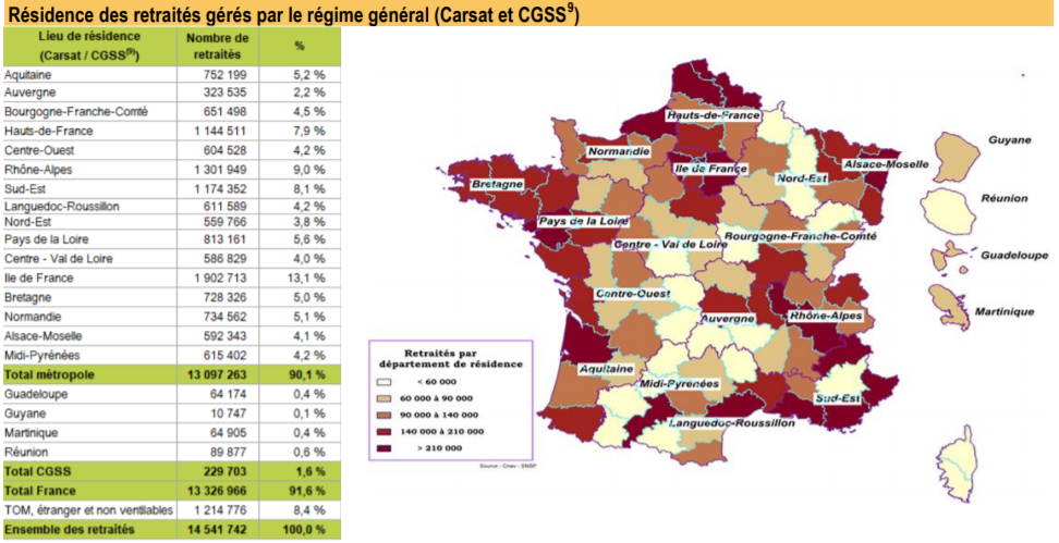 Si les régions littorales sont particulièrement dotées en retraités, l’Ile-de France est la région où vivent le plus de retraités.