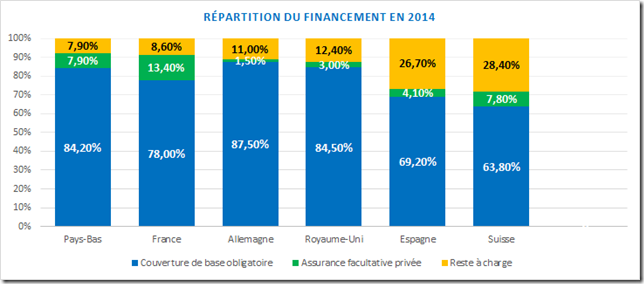 C’est enfin en France et au Pays-Bas que le reste à charge est le plus faible (8,6 % et 7,9 %). Ces deux pays disposent d’une assurance obligatoire de base et d’un deuxième niveau facultatif proposé par l’assurance privée.