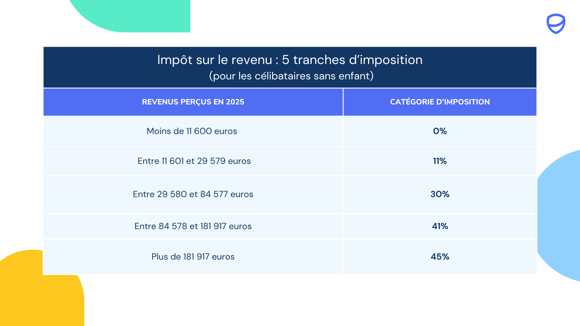 Impôt sur le revenu : 5 tranches d'imposition (pour les célibataires sans enfant) |