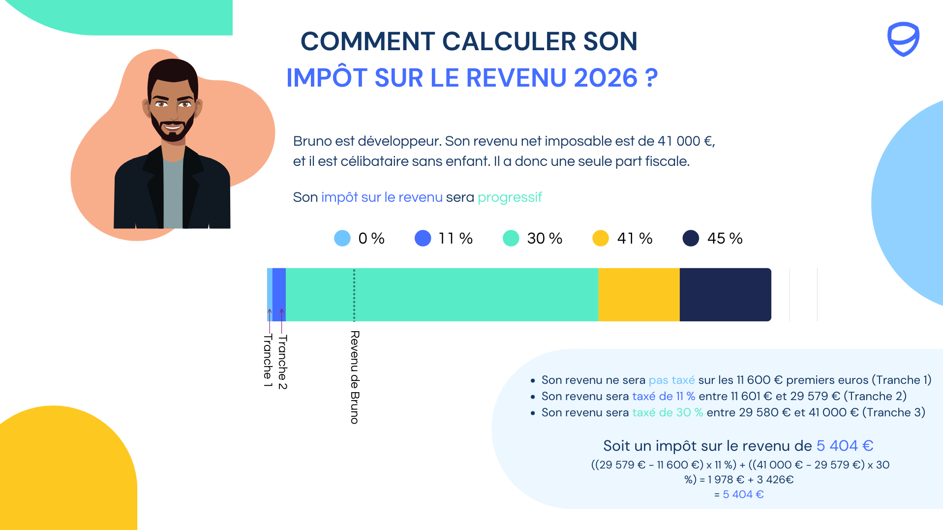 Pour rappel, votre impôt est calculé selon un barème progressif par tranches, déterminé en fonction de votre revenu imposable. Chaque tranche est associée à un taux, allant de 0 % à 45 %.