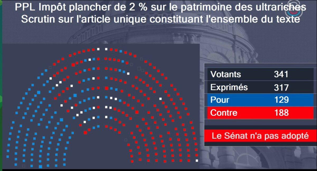 Comme anticipé, le Sénat, dominé par une coalition composée d’une forte composante centriste et de Républicains, a rejeté la proposition de la taxe Zucman. Par 188 voix contre et 129 pour, les sénateurs ont voté contre cette proposition de loi portée par les Écologistes, une grande partie de la gauche et certains centristes, et qui avait déjà adoptée à l'Assemblée nationale en février dernier.
