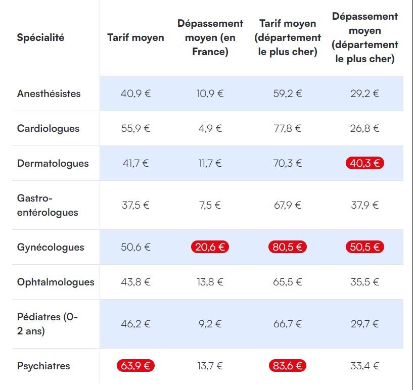 Ci-dessous, les tarifs de la consultation pour huit spécialités :