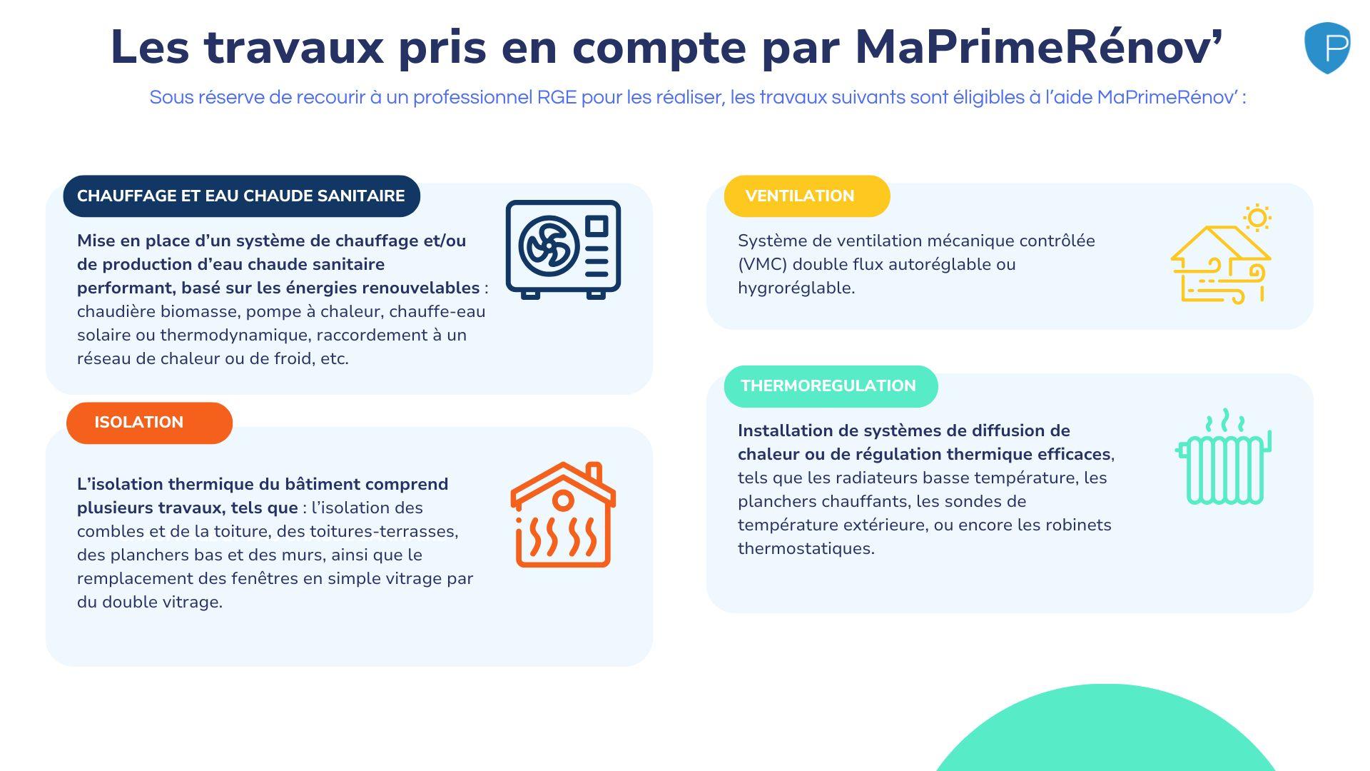 Rappelons que MaPrimeRénov’ permet de financer jusqu’à 90 % des rénovations énergétiques d'ampleur (gain de 2 classes énergétiques minimum) dans le cadre d'un parcours accompagné. L’aide à la rénovation est répartie en quatre couleurs (bleu, jaune, violet et rose), lesquelles correspondent respectivement aux ménages à revenus très modestes, modestes, intermédiaires et supérieurs. L’aide dépend à la fois de cette catégorie de couleur, ainsi que du type de rénovation et de la localisation du logement.