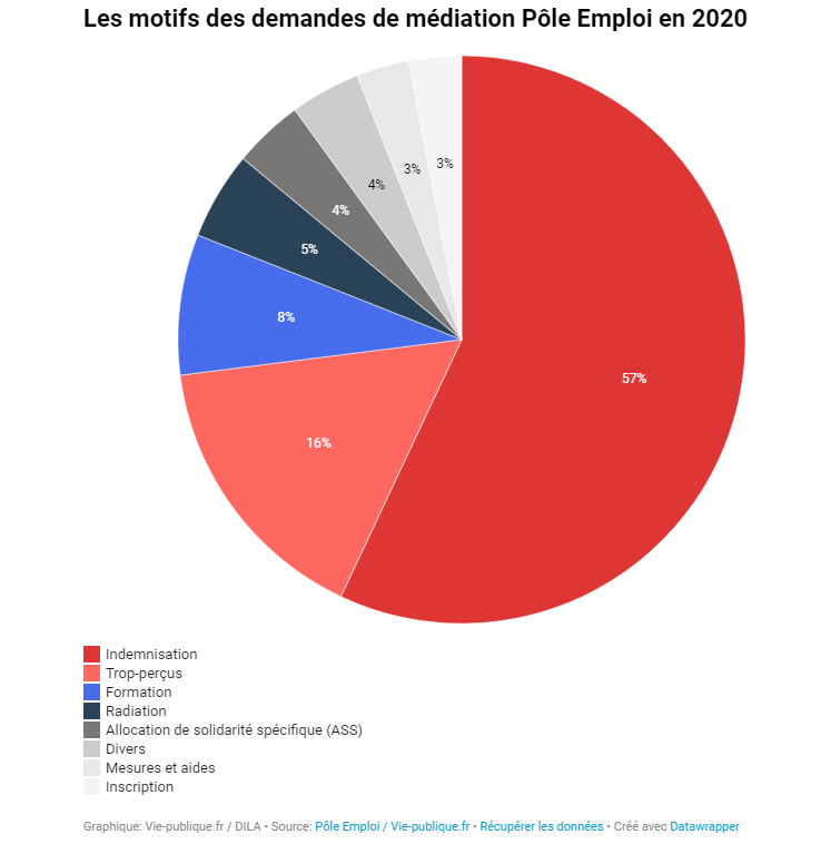 La loi du 1er août 2008 a créé la fonction de médiateur de Pôle emploi, chargé d’examiner et rechercher des solutions amiables aux réclamations individuelles des usagers. En 2020, le nombre de demandes de médiation a augmenté de 12 % par rapport à 2019, pour atteindre le nombre de 34 685, indique le rapport annuel du médiateur national de Pôle emploi. Une hausse liée notamment à la crise sanitaire et à une certaine incompréhension de la réforme de l’assurance chômage.