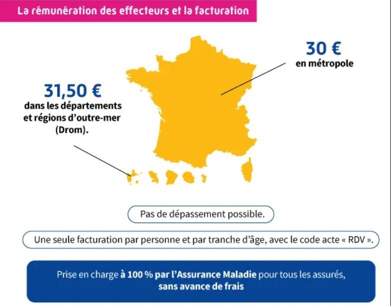 Pour les professionnels de santé effecteurs, le bilan de prévention est rémunéré à hauteur de 30 euros en métropole et 31,50 euros dans les départements et régions d’outre-mer (Drom). Il ne peut faire l’objet d’aucun dépassement.
