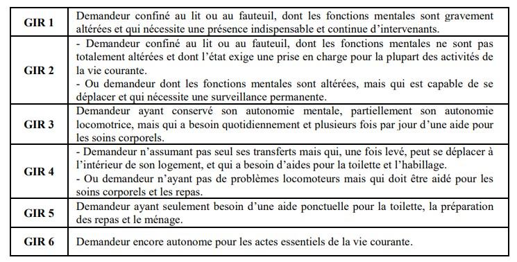 - Une mise en œuvre simplifiée : la mise en œuvre de la garantie dépendance proposée serait déterminée en fonction des critères objectifs de la grille AGGIR : dès lors que l’assuré reçoit l’APA au titre d’un GIR 1 ou 2,