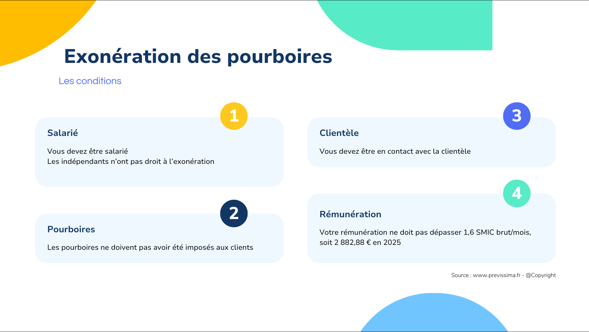 Depuis 2022, les pourboires sont exonérés de l’ensemble des cotisations et contributions sociales, sous conditions :