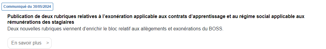 Le Bulletin officiel de la sécurité sociale (BOSS) s’est enrichi de deux nouvelles rubriques venant enrichir le bloc relatif aux « allègements et exonérations » :