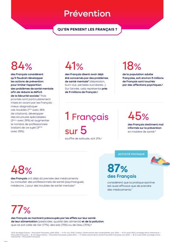 D’après un récent sondage Odoxa, 84% des Français considèrent qu’il est nécessaire de développer les actions de prévention pour limiter l’apparition des problèmes de santé mentale afin de réduire le déficit de la Sécurité sociale.