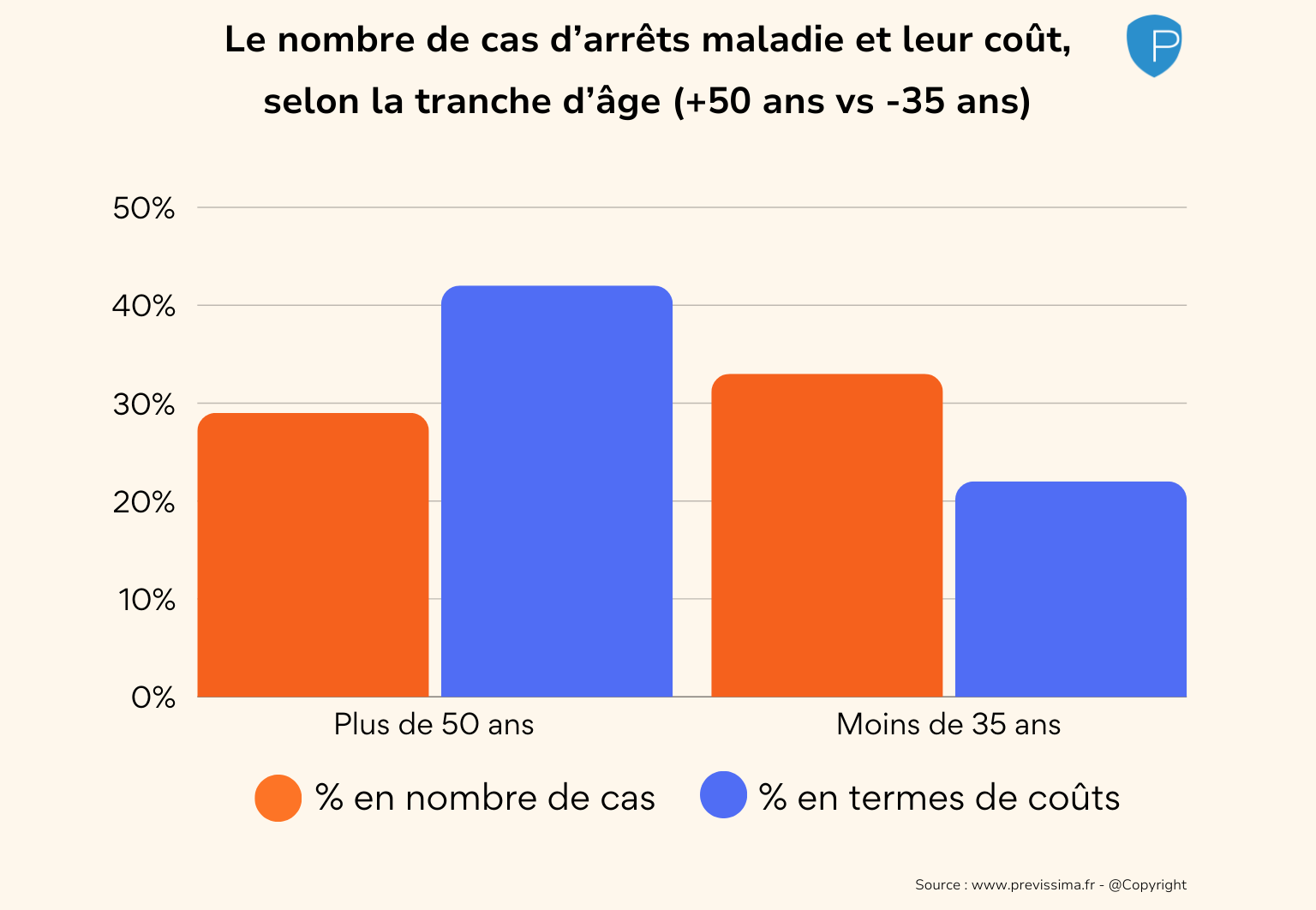 Les arrêts maladie sont en effet plus longs chez les plus de 50 ans en raison de leur état de santé (soins plus lourds à traiter) et d’une récupération moins rapide. De plus, les réformes successives repoussant l’âge légal de départ à la retraite ont obligé les travailleurs à rester actifs plus longtemps, augmentant leur exposition à des risques de santé liés à l'âge. En conséquence, la prolongation de la vie professionnelle entraîne une hausse des arrêts maladie parmi les seniors.