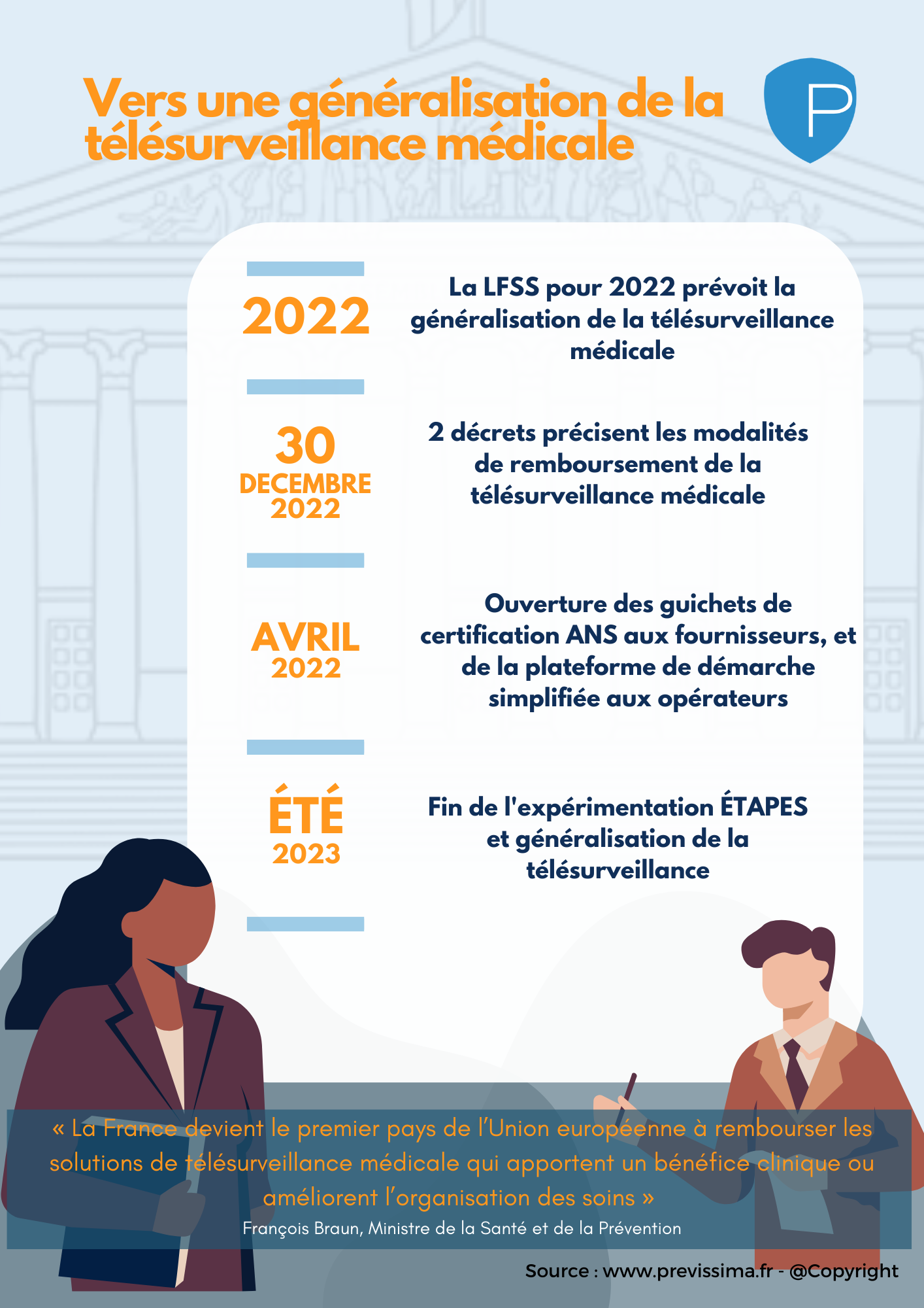 Le remboursement de la télésurveillance qui était jusque-là en phase d’expérimentation via le programme ETAPES, se généralisera bien à compter du 1er juillet 2023 comme l’avait annoncé le ministre de la Santé François Braun.