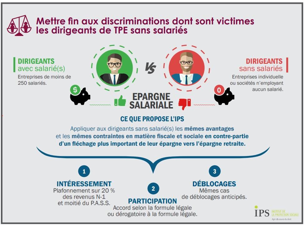 Au nom de l’équité, l’IPS propose d’aménager les règles de l’épargne salariale afin que les patrons de TPE bénéficient des différents outils de cette épargne et des mêmes avantages et contraintes en terme fiscal et social que les autres dirigeants.