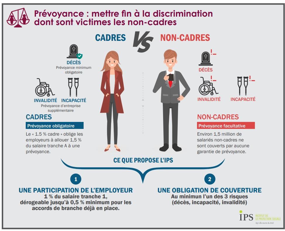 Actuellement, la couverture en prévoyance des cadres n’est obligatoire que pour les salariés du secteur privé. Environ 1,5 million de salariés non-cadres ne sont couverts par aucune garantie de prévoyance. L’IPS est favorable à l’idée d’une couverture prévoyance généralisée des salariés, en tenant compte des besoins de chaque profession et sous certaines conditions :