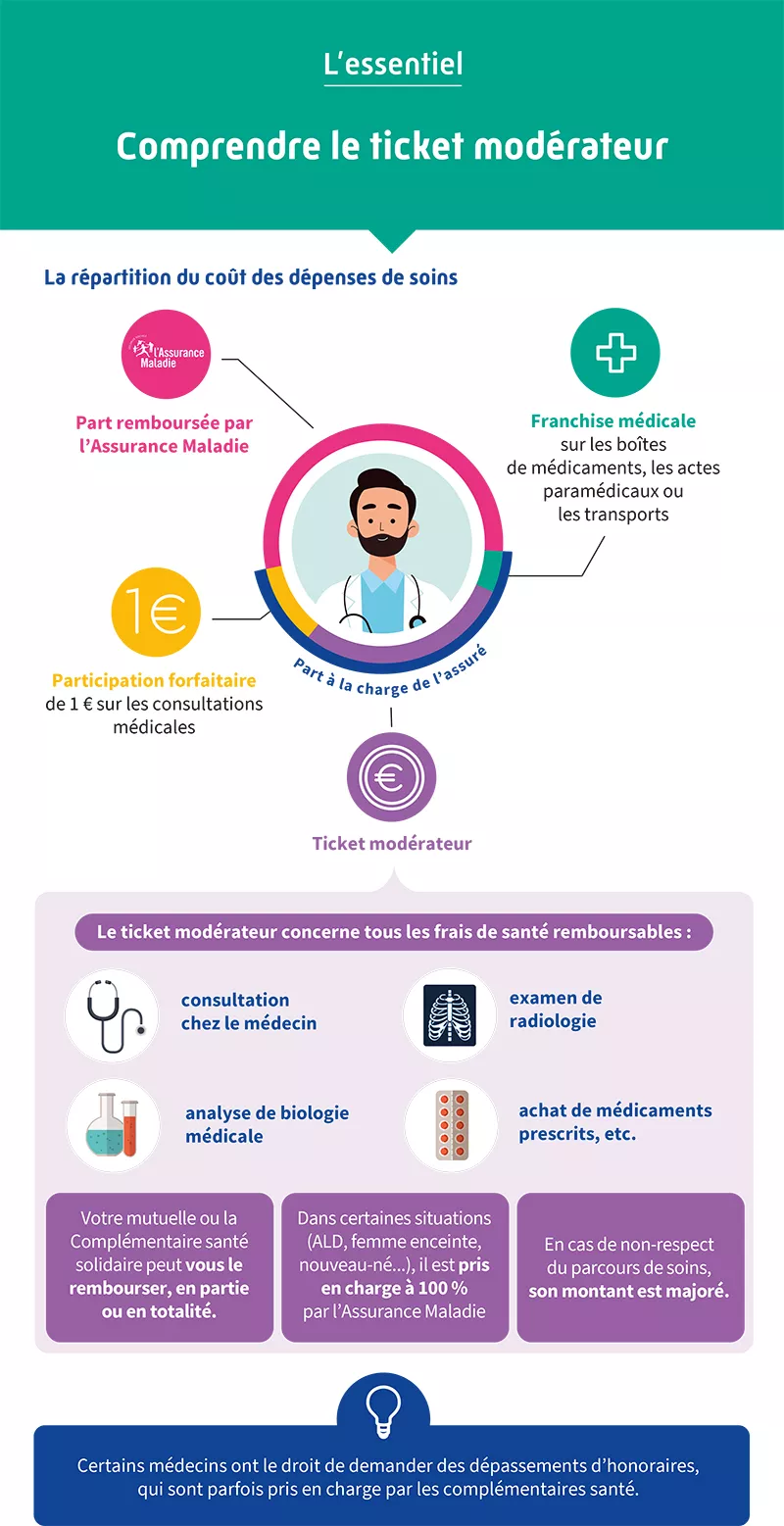 En outre, les tickets modérateurs, forfaits et franchises actuels sont remplacés par un ticket modérateur à taux unique en médecine de ville et une franchise journalière à l’hôpital.