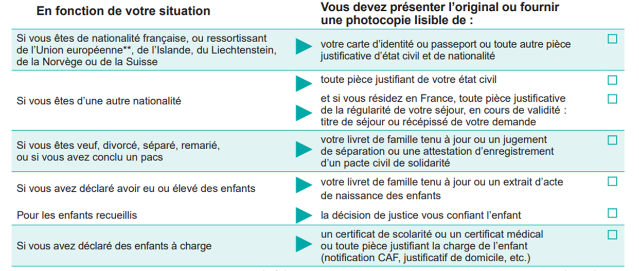 - Une photocopie d’un justificatif d’état civil (voir ci-dessous) ;