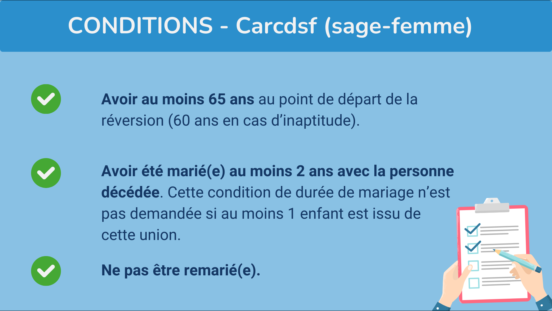 Vous devez avoir au moins 65 ans pour bénéficier de la pension de réversion de la Carcdsf.