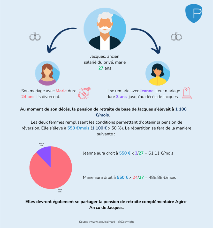 Si Laetitia décède, Sylvie récupère l’intégralité de la réversion complémentaire, soit 60 % de 30 000 € = 18 000 € brut annuel.