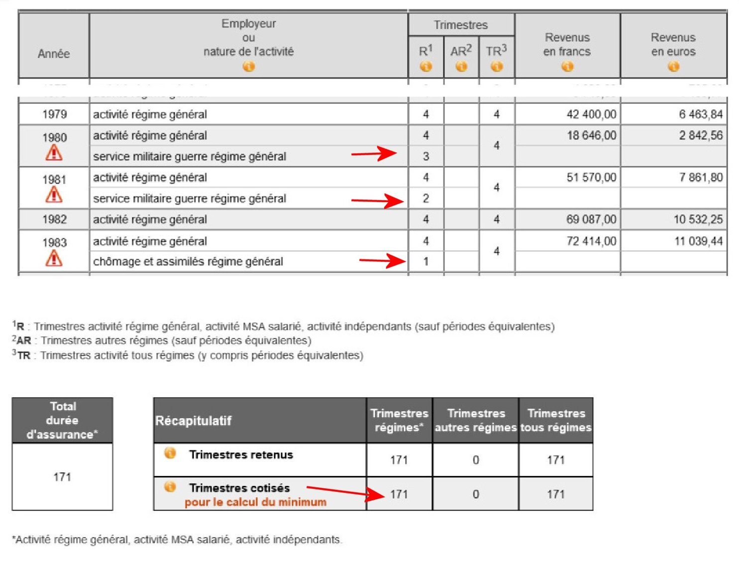 L'ancien document présente comme avantage, sur une année, d'indiquer les trimestres acquis par type, travail, service militaire, chomage, maladie, et en bas de récapituler les trimestres retenus et les trimestres cotisés. Sous ce format : https://i.goopics.net/yl2owi.jpg sur plusieurs questions, les personnes n'avaient pas ce format de document. Il faudrait voir s'il existe toujours. Par exemple avec l'Estimation Indicative Globale. Etant retraité la rubrique carrière n'existe plus sur mon compte.
