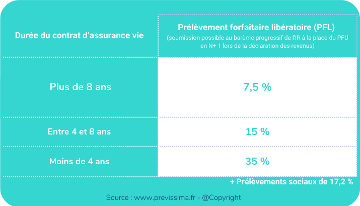 - A un prélèvement forfaitaire libératoire (PFL) dégressif au fil des années ;