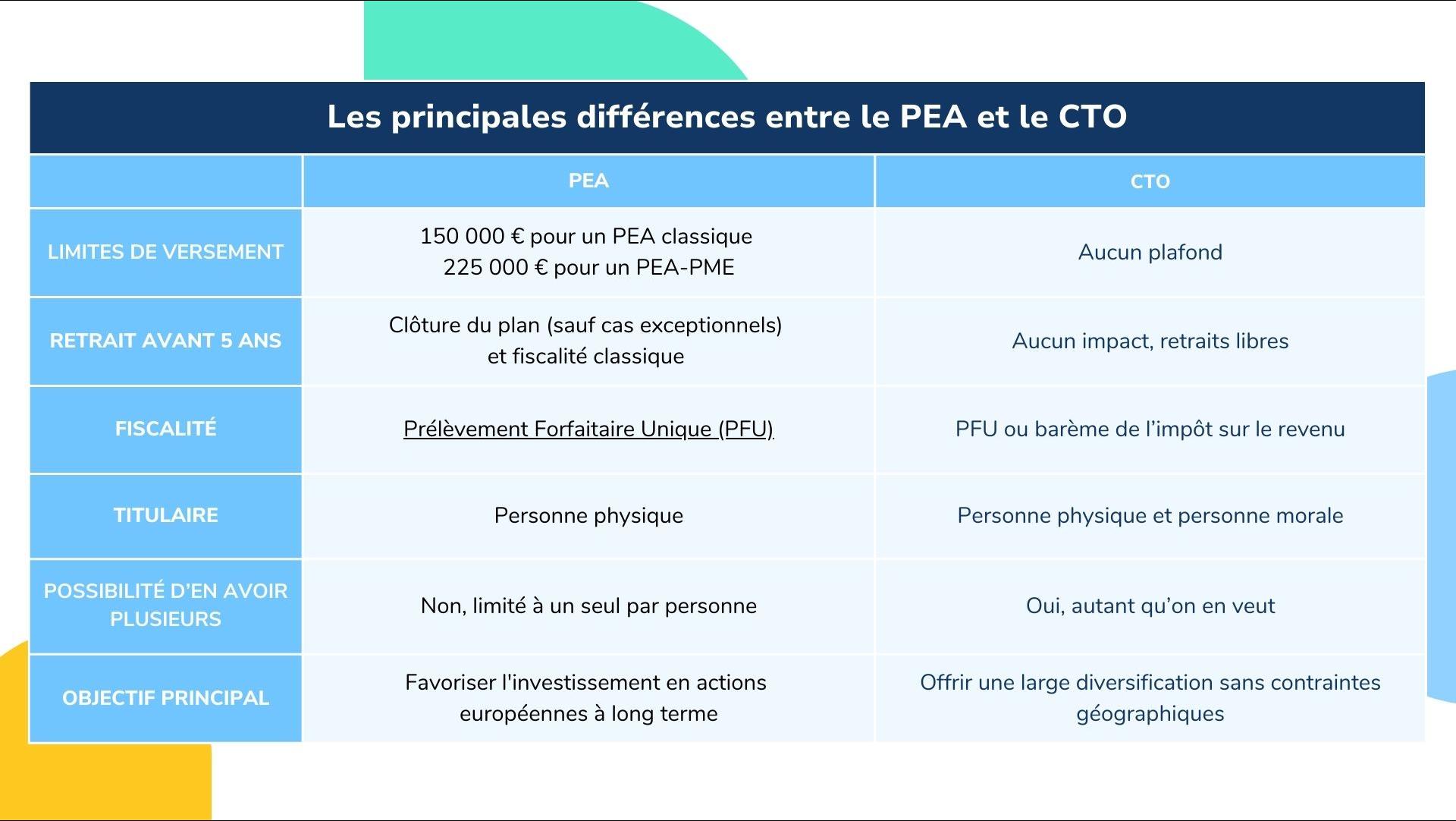 PEA ou CTO : le tableau comparatif