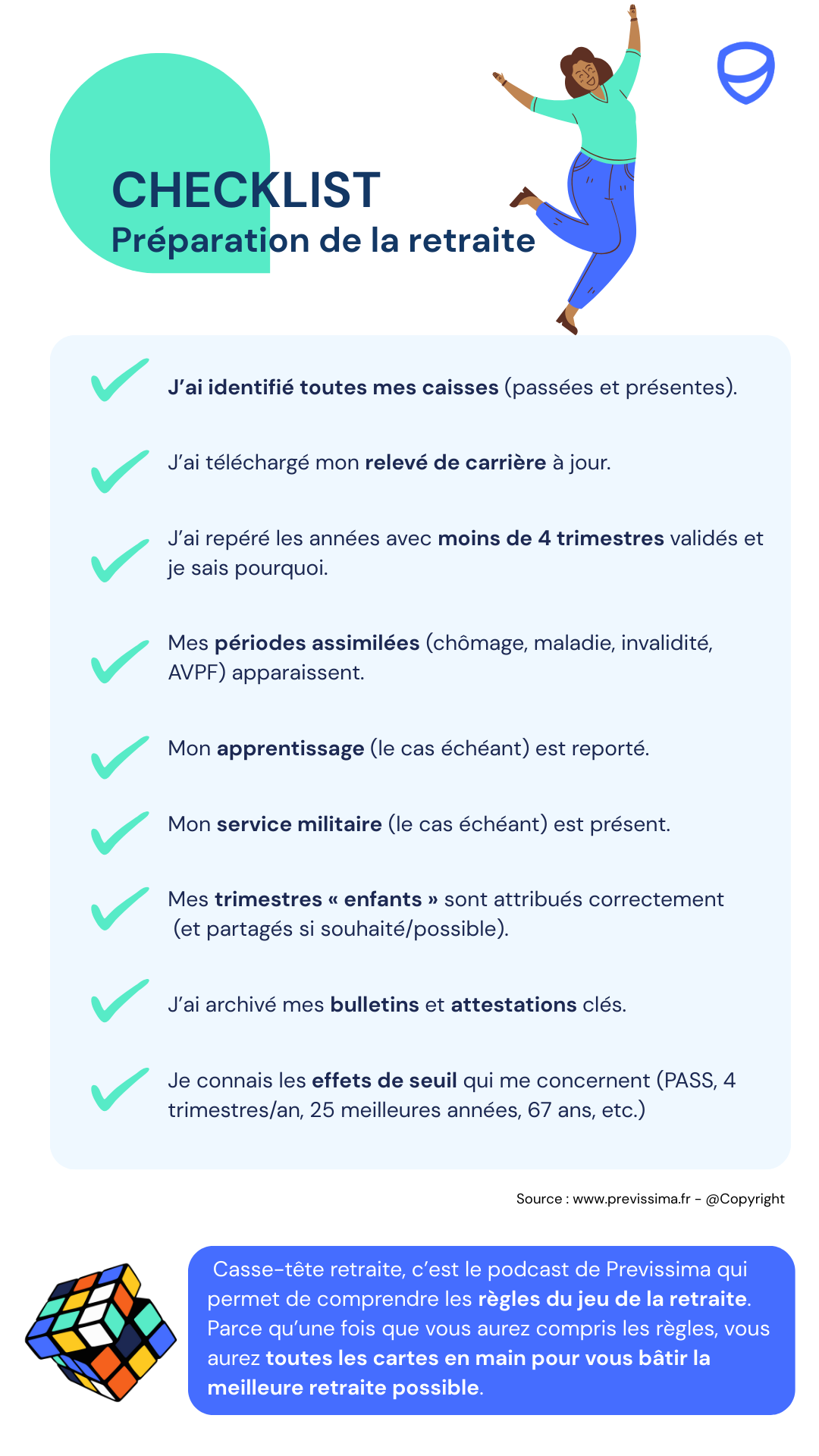 La complexité est réelle : aucun « guichet unique » ne vous dira « dans votre cas, faites ceci ». C’est un puzzle de textes, décrets, circulaires, formules. Bonne nouvelle : en repérant quelques signaux simples (4 trimestres/an, anomalies évidentes, périodes manquantes) et en gardant vos preuves, vous reprenez la main.