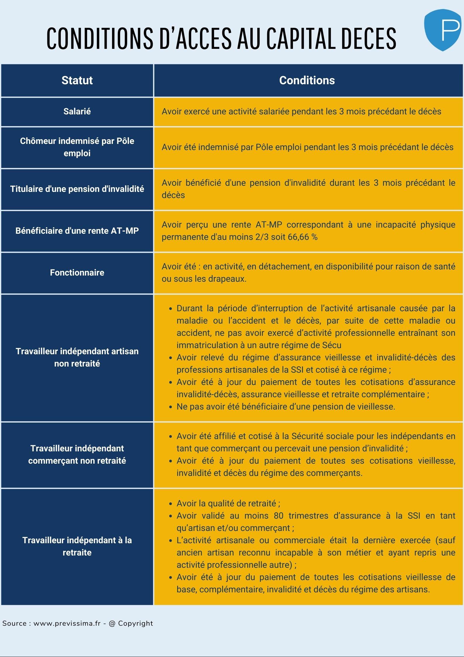 - Quelles sont les conditions ouvrant droit au capital décès ?
